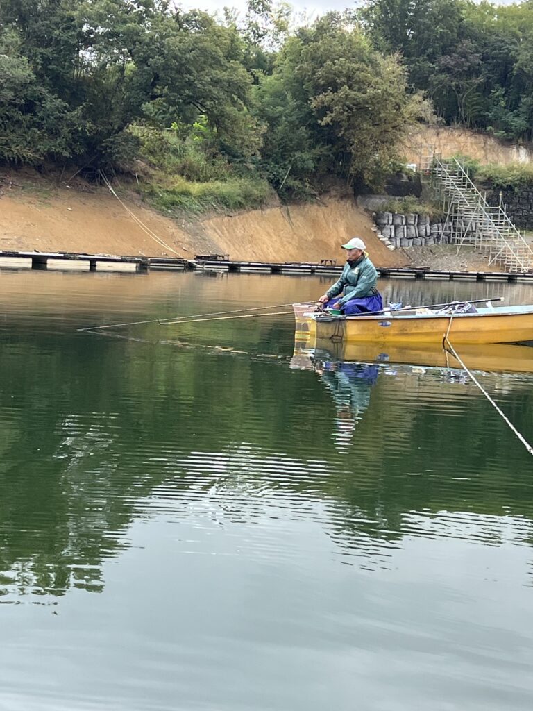 桟橋には1人のみ。浅ダナに魚は見えるが、食い気は無し、チョウチンのタナは素直に食って来ました。142枚。